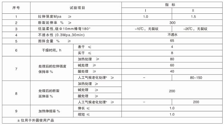 4、含固量高,物理力學性能佳,耐水佳、耐候佳、耐久性好,可做外露型防水。