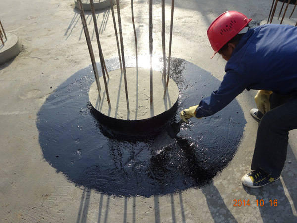 2、涂刷密封膏:立面涂刷100mm高,平面超出管洞口150mm寬,涂刷厚度約2mm;